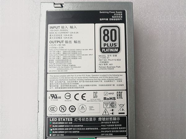 | 出力電圧 : | 12.2V ==90.16A +12Vsb=3.0A 1100W |