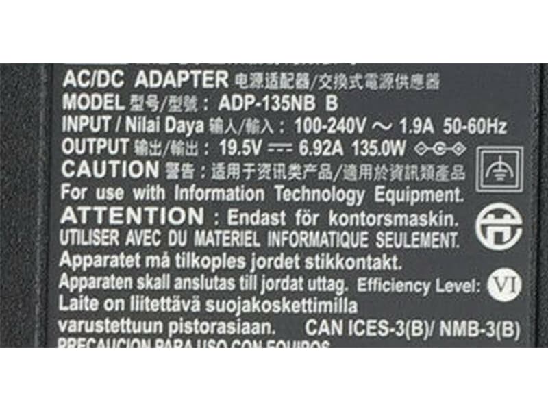 | 出力電圧 : | 19.5V 6.92A,/7.1A 135W |