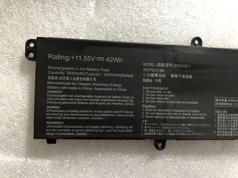 1.同じメーカーの同じシリーズでも搭載スペックや発売世代によって対応バッテリーが異なる場合があります。購入する前に、B31N1911のバッテリー情報と互換性のあるモデルを注意深くお読みください。