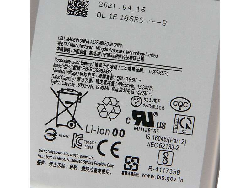 1.同じメーカーの同じシリーズでも搭載スペックや発売世代によって対応バッテリーが異なる場合があります。購入する前に、EB-BG998ABYのバッテリー情報と互換性のあるモデルを注意深くお読みください。