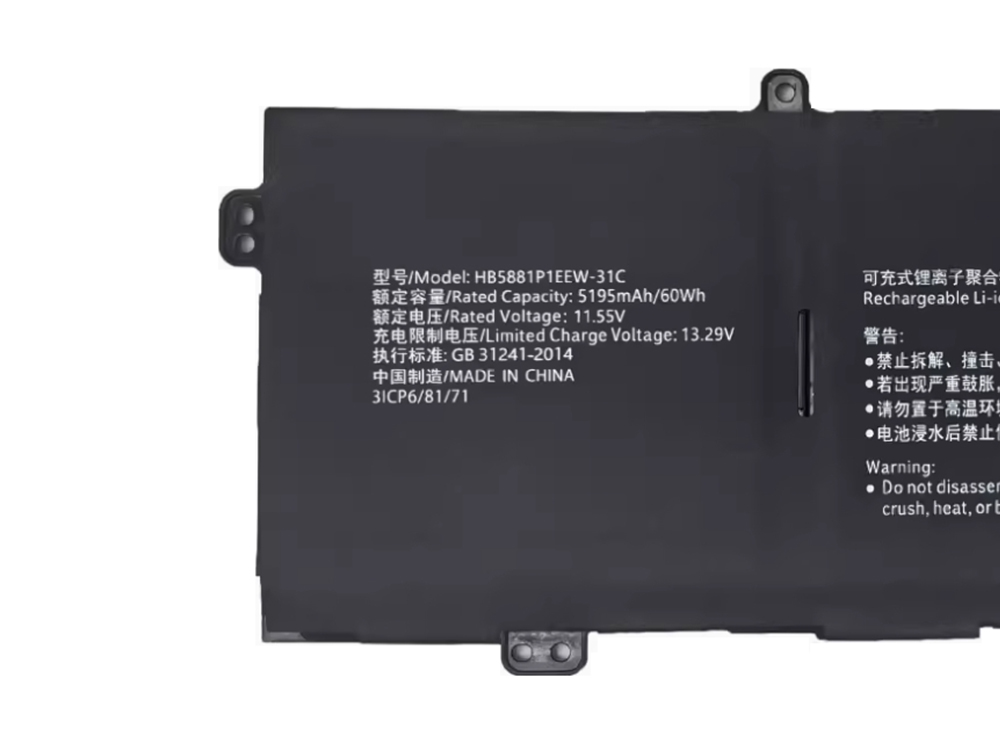 1.同じメーカーの同じシリーズでも搭載スペックや発売世代によって対応バッテリーが異なる場合があります。購入する前に、HB5881P1EEW-31Cのバッテリー情報と互換性のあるモデルを注意深くお読みください。