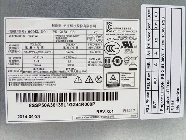 ノートパソコン用 レノボ PS-2151-08 電源ユニット 100-127V 200-240V 6A/3A 50/60Hz 150W Max; +12.0V +12A(Yellow) 144W Max;+5.08Vsb 2A(Purple) 10W Max, 対応機種 Lenovo S740 S800 A9050 B5040 。電源型番 「PS-2151-08 VC, 54Y8882, APC003, 36200624, 36200625」。当社は高質な安価の製品を皆様に提供し高速配送!【1年間の保証】 Lenovo 電源ユニット完全新品!